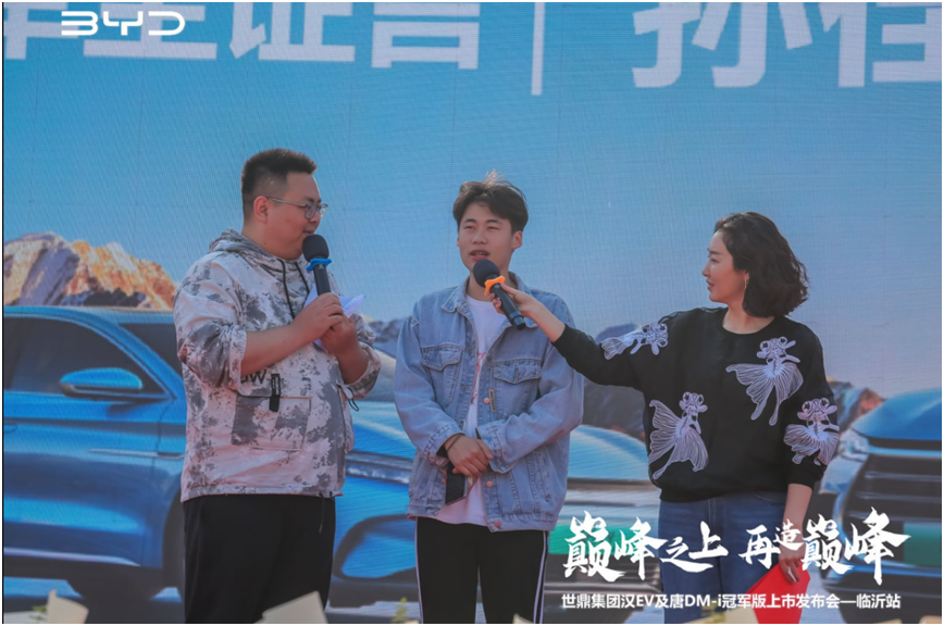 同时也邀请了需要专业媒体人来到现场,众多媒体共同见证此次世鼎集团汉ev冠军版及唐dmi冠军版上市发布会,899车时代主持人方华女士精彩的证言让我们了解到比亚迪作为主国产品牌能在如此激烈的市场环境中弯道超车是一个多么不容易的历程,秦,汉,唐,三个车型,三个朝代,秦代表一统A轿市场天下,汉唐代表盛唐强汉,中高端市场颠覆传统豪华。汉车主讲述选车买车的心路历程,由衷地表达了对汉ev的喜爱。